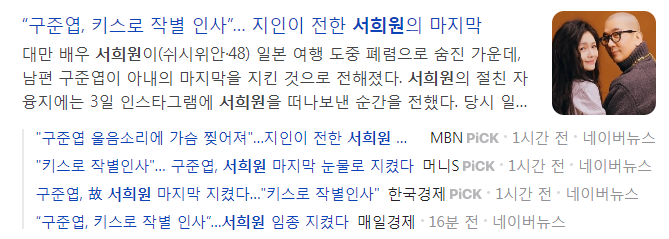영화처럼 다시 만난 서희원과 구준엽의 사랑이야기로 많은 사람의 응원을 받은 커플이 이렇게 황망하게 이별로 마무리 될줄을 누가 알았을까? 너무나 안타깝다. 우리의 삶 속에도 많은 비극이 있지만 대만과 한국의 두 스타의 이별에 많은 이들이 추모하고 있다. 운명이 라는게 참 그렇다. 기쁠때 보단 슬픔 비극이 많다. 그들의 사주를 보며 이야기 해보자.