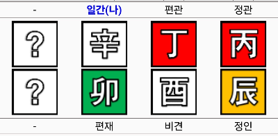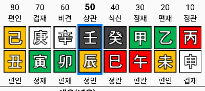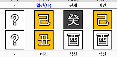 구준엽의 사주다. 서희원과 마찬가지로 가을 유월에 태어난 기축 일주로 드넓은 대지를 뜻한다. 주관 고집이 강하고 식재의 발달과 초년 운기도 연예인의 사주라 할 수 있겠다. 무관 사주에 무 인성 사주로 자립 독립심이 강하고 자유로운 영혼의 사주다. 구준엽에겐 소중한 여자 재가 월간의 계수가 부인이며 애인이며 와이프다. 여기서 부부의 운명적인 요소가 작용한 게 눈에 보인다. 양쪽의 기토가 계를 극하고 있으며 유금 식신이 계수를 생하고 있어 버티는 형국이다. 다만 보통 대운에서 충이 오는 시기에 들었으니 정계충 묘유충으로 소중한 재물 와이프 식신이 위태롭다.