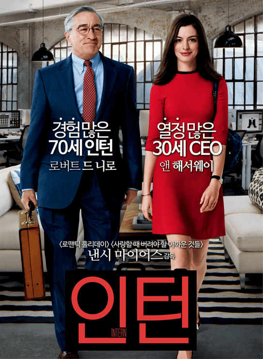 영화 '인턴'은 2015년에 개봉한 미국 영화로 앤 해서웨이와 로버트드니로가 주연을 맡은 작품입니다. 이영화는 어린 나이에 창업한 성공한 여성 CEO와 그녀의 회사에 들어오게 된 경력과 경험이 많은 노인 인턴과의 소통 이야기를 다루고 있어 많은 사람들의 관심을 받았습니다. 그럼 들어가 볼까요?